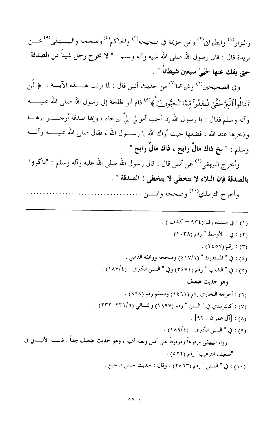 والبزار (¬1) والطبراني (¬2) وابن خزيمة في صحيحه (¬3) والحاكم (¬4) وصححه البيهقي (¬5) عن بريدة قال: قال رسول الله صَلَّى اللهُ عَلَيْهِ وَآلِهِ وَسَلَّمَ: "لا يخرج رجل شيئا من الصدقة حتى يفك عنها لحيي سبعين شيطانا".