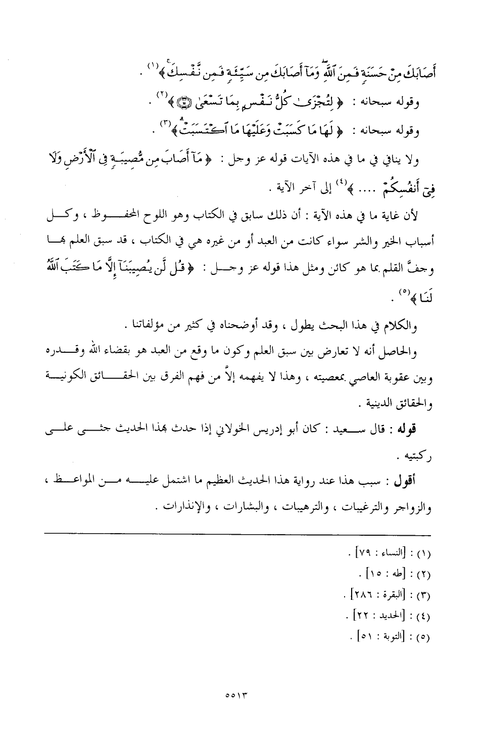 أَصَابَكَ مِنْ حَسَنَةٍ فَمِنَ اللَّهِ وَمَا أَصَابَكَ مِنْ سَيِّئَةٍ فَمِنْ نَفْسِكَ} (¬1).