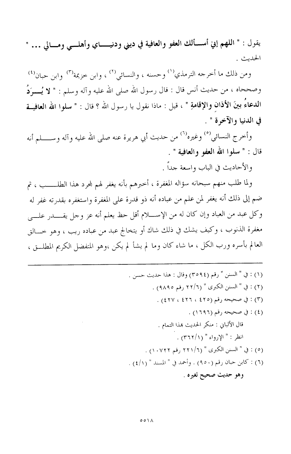 وأخرج النسائي (¬5) وغيره (¬6) من حديث أبي هريرة عنه صَلَّى اللهُ عَلَيْهِ وَآلِهِ وَسَلَّمَ أنه قال: "سلوا الله العفو والعافية".