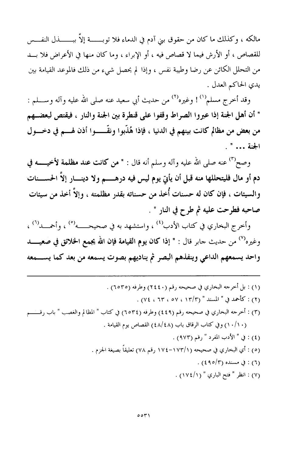 (¬3) أخرج البخاري في صحيحه رقم (449) وطرفه (6534) في كتاب "المظالم والغصب" باب رقم (10/ 10) وفي كتاب الرقاق باب (48/ 48) القصاص يوم القيامة.