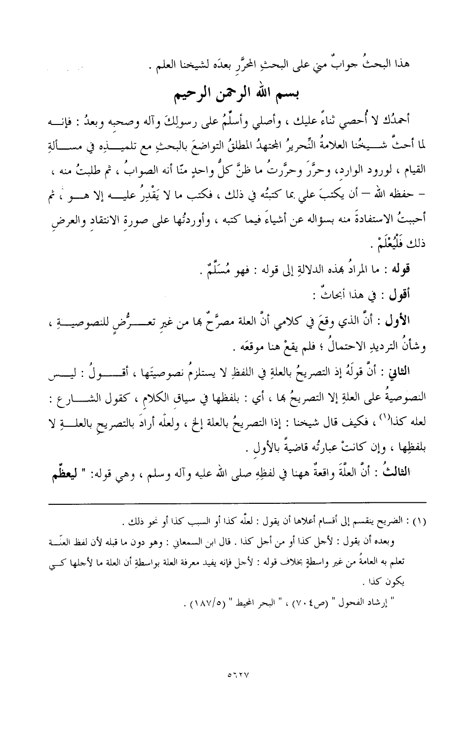 هذا البحث جواب مني على البحث المحرر بعده لشيخنا العلم.