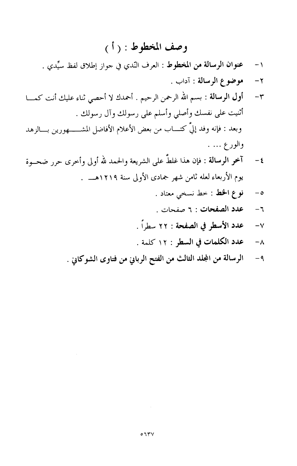 9 - الرسالة من المجلد الثالث من الفتح الرباني من فتاوى الشوكاني.
