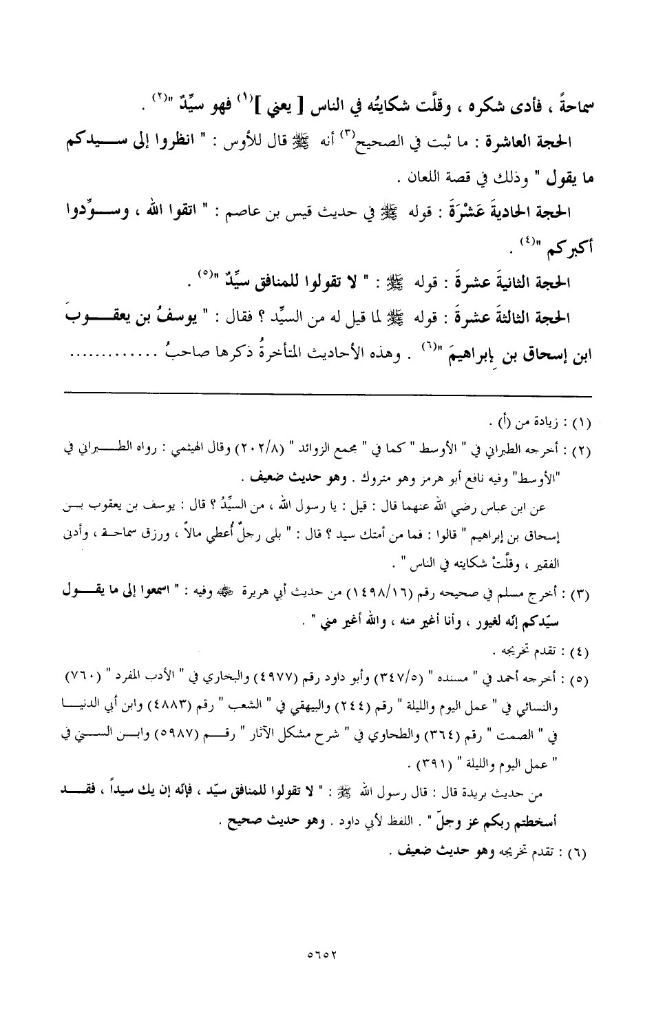 الحجة الثانية عشرة: قوله - صَلَّى اللهُ عَلَيْهِ وَسَلَّمَ -: " لا تقولوا للمنافق سيد " (¬5).