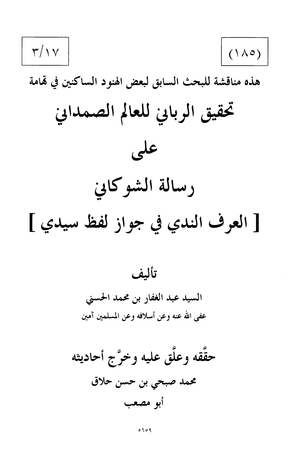 تحقيق الرباني للعالم الصمداني على رسالة الشوكاني