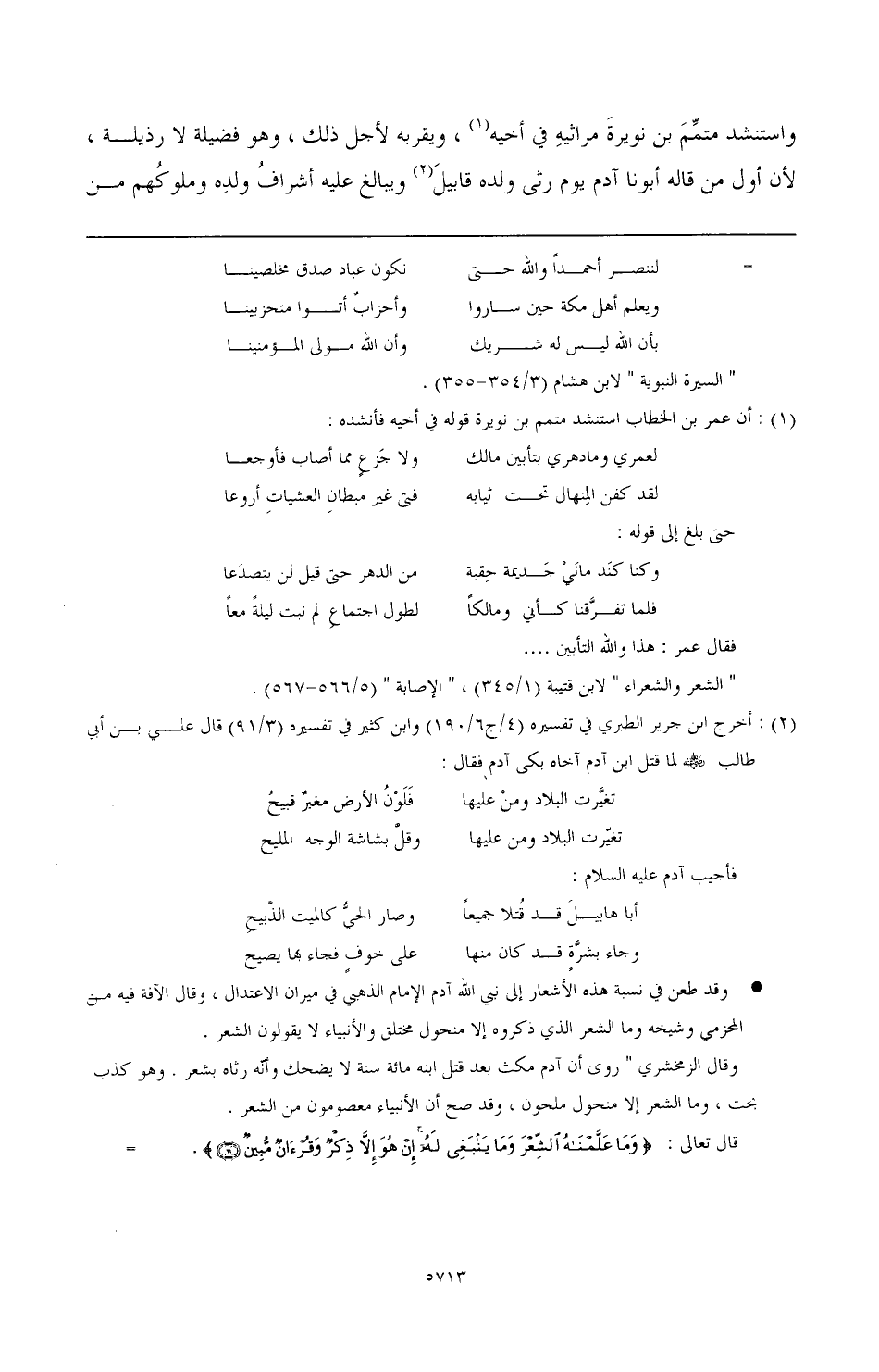 (¬1) أن عمر بن الخطاب استنشد متمم بن نويرة قوله في أخيه فأنشده: