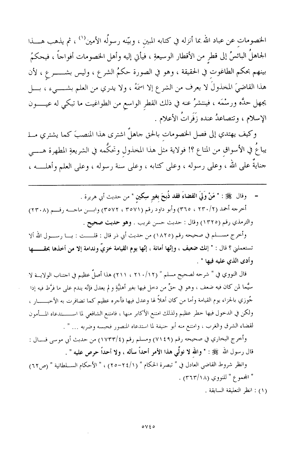 وكيف يهتدي إلى فصل الخصومات بالحق جاهل اشترى هذا المنصب كما يشتري ما يباع في الأسواق من المتاع؟! فولاية مثل هذا المخذول وتحكمه في الشريعة المطهرة هي جناية على الله، وعلى رسوله، وعلى كتابه، وعلى سنة رسوله، وعلى العلم وأهله،