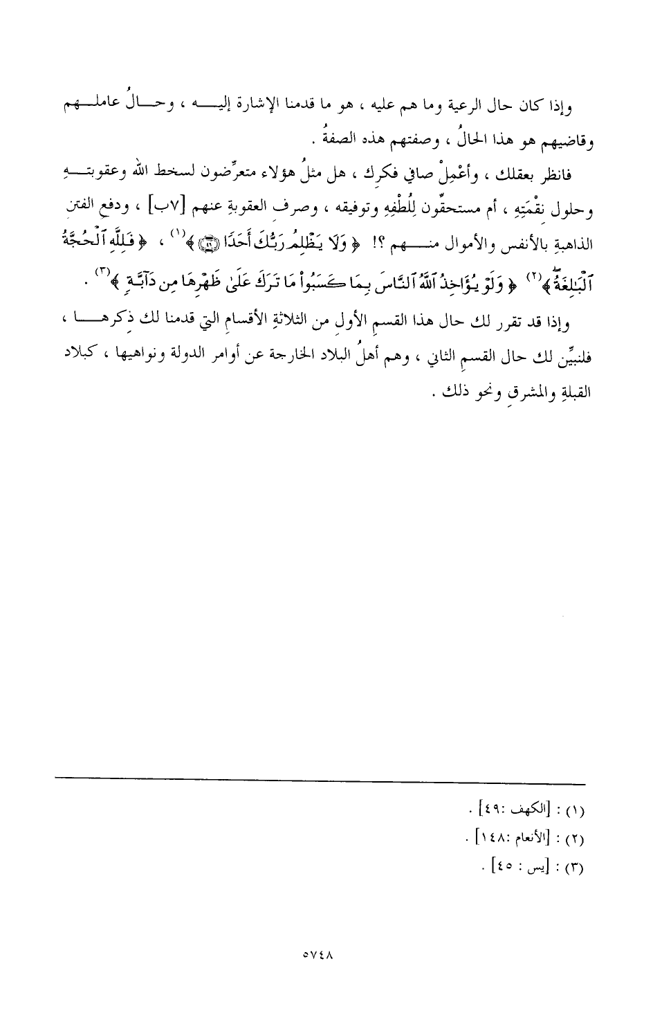 وإذا قد تقرر لك حال هذا القسم الأول من الثلاثة الأقسام التي قدمنا لك ذكرها، فلنبين لك حال القسم الثاني، وهم أهل البلاد الخارجة عن أوامر الدولة ونواهيها، كبلاد القبلة والمشرق ونحو ذلك.