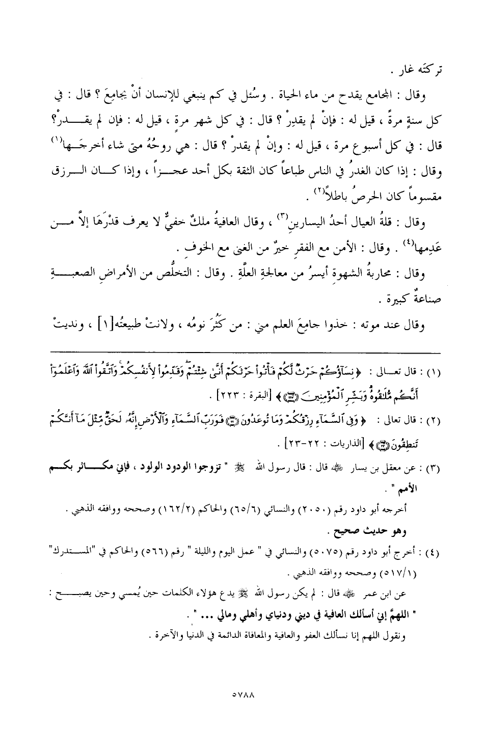 (¬4) أخرج أبو داود رقم (5075) والنسائي في " عمل اليوم والليلة " رقم (566) والحاكم في " المستدرك " (1/ 517) وصححه ووافقه الذهبي.