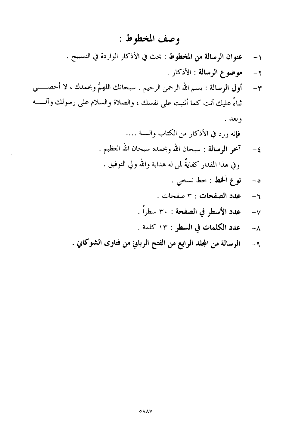 1 ـ عنوان الرسالة من المخطوط: بحث في الأذكار الواردة في التسبيح.