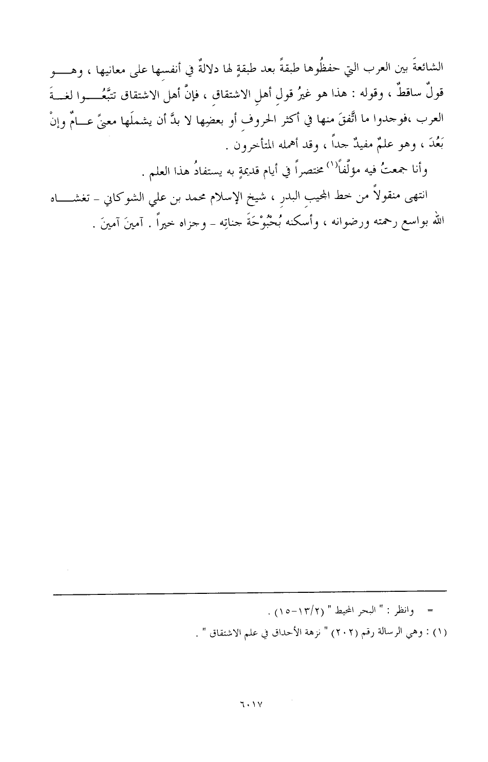(¬1) وهي الرسالة رقم (202) (نزهة الأحداق في علم الاشتقاق).