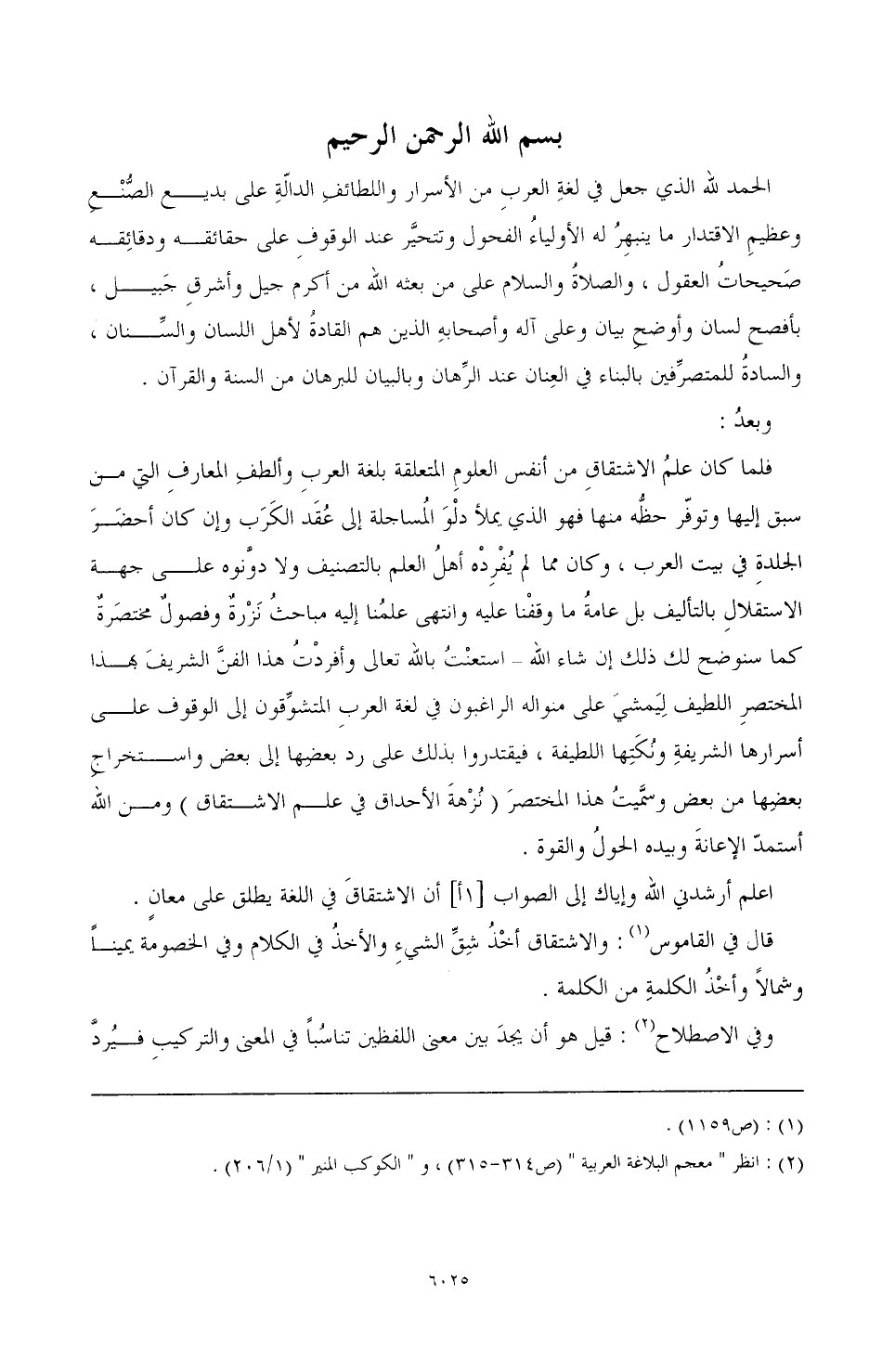 الحمد لله الذي جعل في لغةِ العربِ من الأسرار واللطائفِ الدالّة على بديع الصُّنْعِ وعظيمِ الاقتدار ما ينبهِرُ له الأولياءُ الفحول وتتحيَّر عند الله من أكرم جيل وأشرقِ جَبيل، بأفصح لسان وأوضحِ بيان وعلى آله وأصحابهِ الذين هم القادةُ لأهل اللسان والسِّنان، والسادةُ للمتصرِّفين بالبناء في العِنان عند الرِّهان وبالبيان للبرهان من السنة والقرآن.