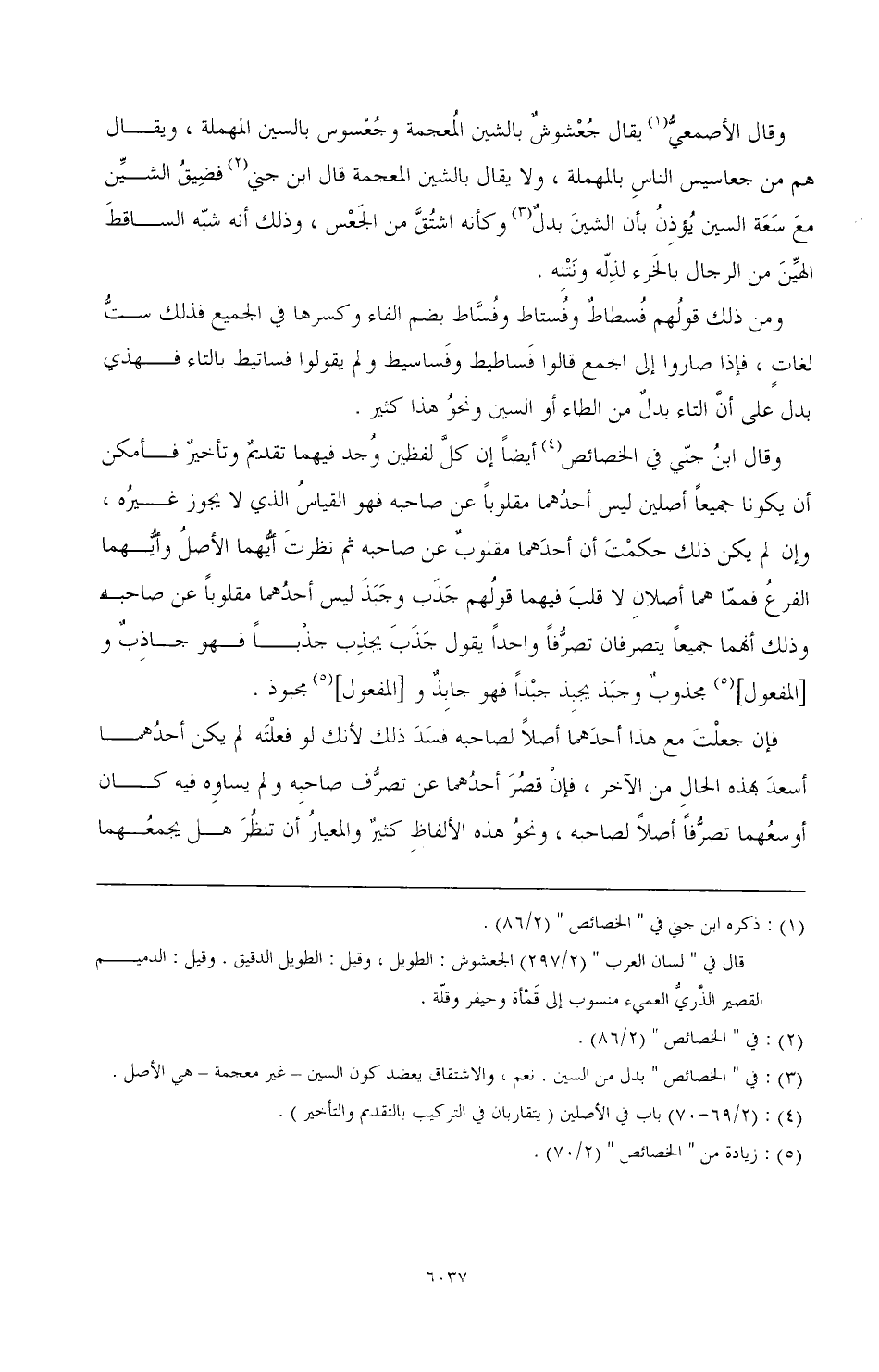 (¬5) زيادة من (الخصائص) (2/ 70).