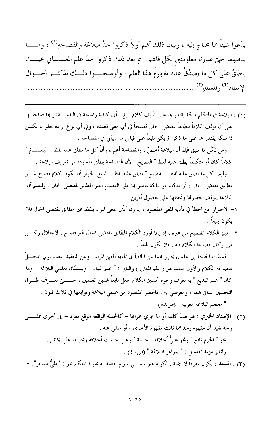 يدعو شيئًا مما يحتاج إليه، وبيان ذلك أنهم أولاً ذكروا حدَّ البلاغة والفصاحةِ، (¬1) وما ينافيها حتى صارتا معلومتينِ لكل فاهم. ثم بعد ذلك ذكروا حدَّ علم المعاني بحيث ينطبقُ على ما يصدُقُ عليه مفهوم هذا العلم، وأوضحوا ذلك بذكر أحوال الإسناد (¬2) والمسندِ (¬3) .......................