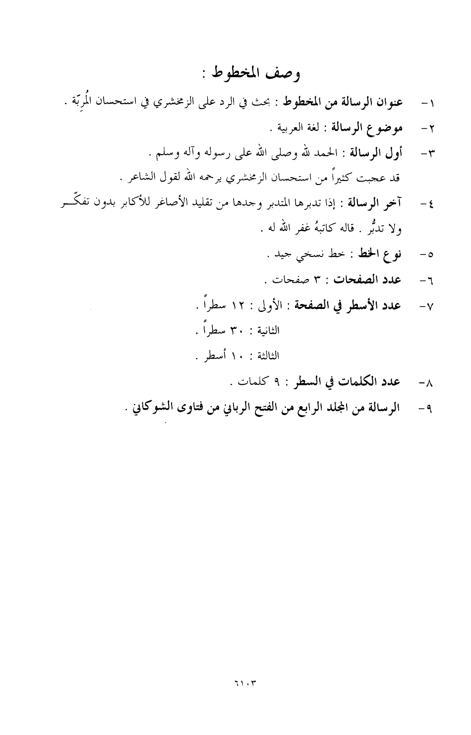 5 ـ نوع الخط: خط نسخي جيد.