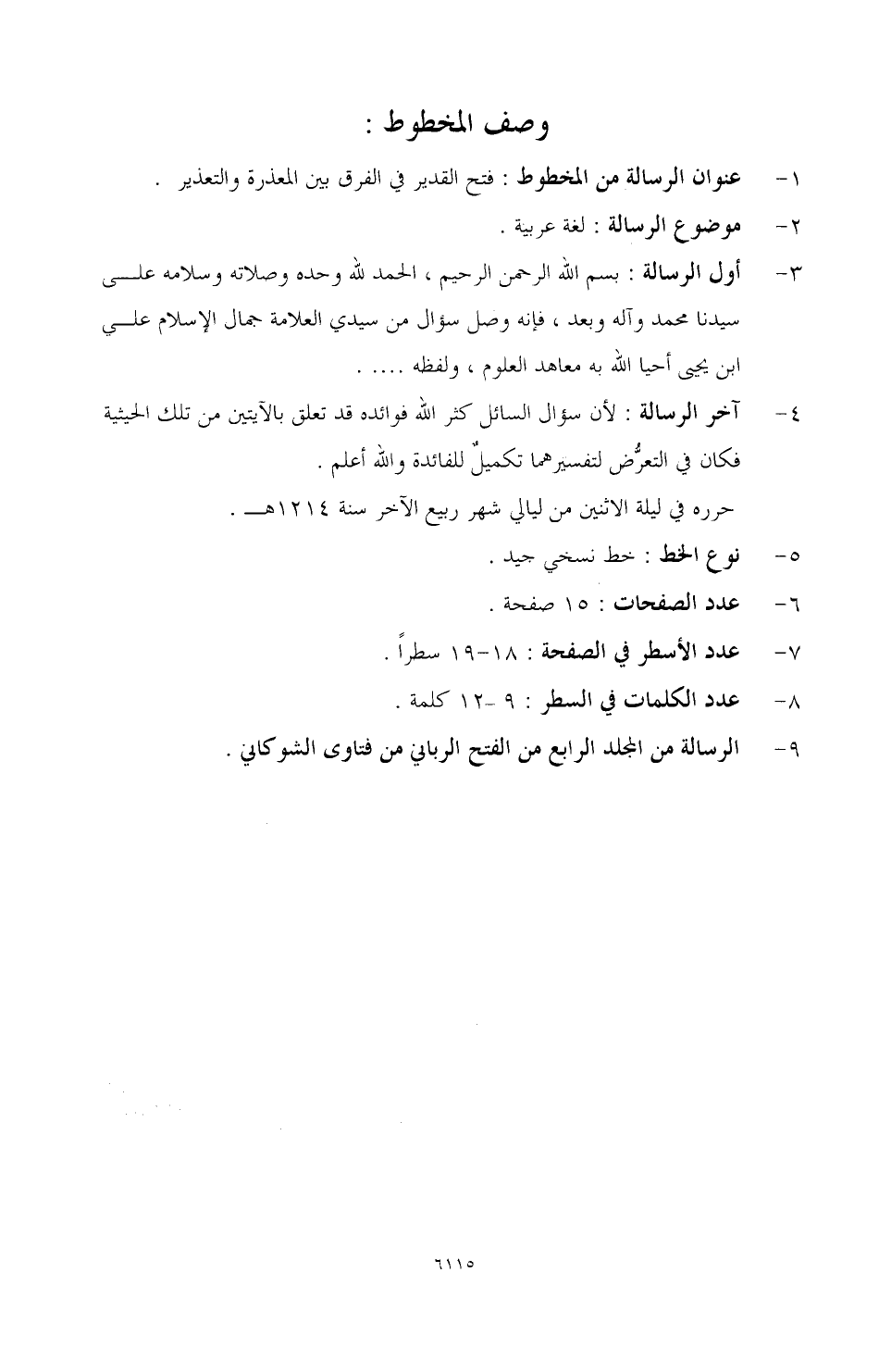 5 ـ نوع الخط: خط نسخي جيد.