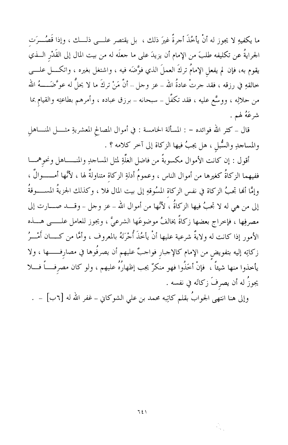وإلى هنا انتهى الجواب بقلم كاتبه محمد بن على الشوكاني- غفر الله له [6ب]-.
