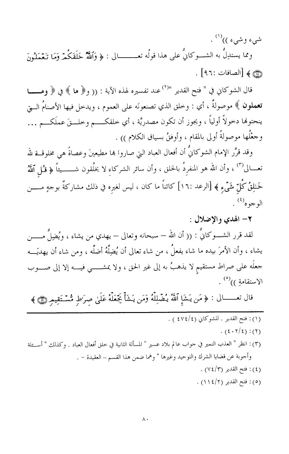 (¬3) انظر" العذب النمير في جواب عالم بلاد عسير " المسألة الثانية في خلق أفعال العباد. وكذلك " أسئلة وأجوبة عن قضايا الشرك والتوحيد وغيرها " وهما ضمن هذا القسم- العقيدة-.