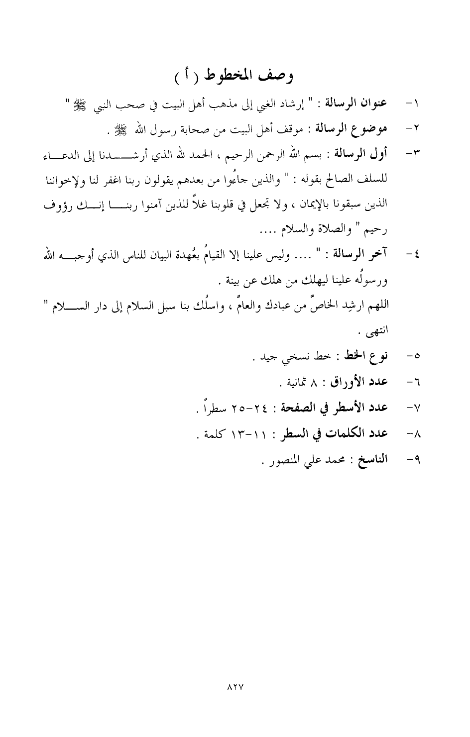 1 - عنوان الرسالة: " إرشاد الغبي إلى مذهب أهل البيت في صحب النبي صَلَّى اللهُ عَلَيْهِ وَسَلَّمَ"