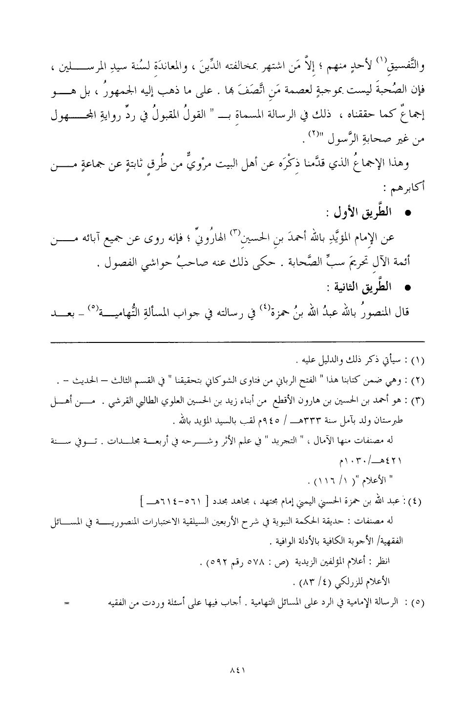 قال المنصور بالله عبد الله بن حمزة (¬4) في رسالته في جواب المسألة التهامية (¬5) بعد