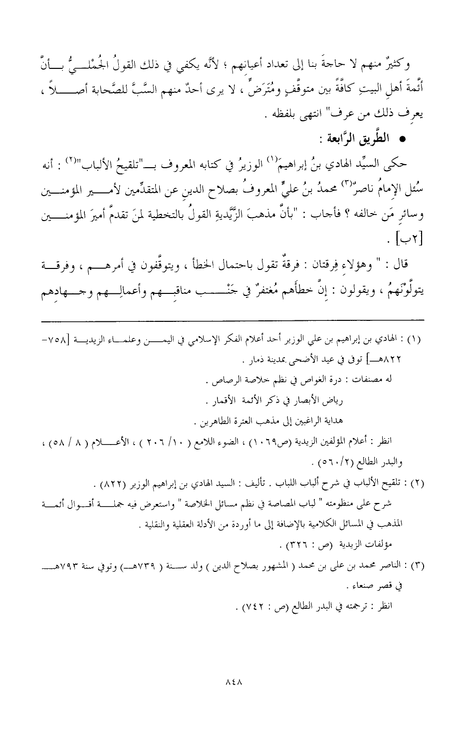(¬1) الهادي بن إبراهيم بن علي الوزير أحد أعلام الفكر الإسلامي في اليمن وعلماء الزيدية (7581 - 822) منها توفى في عيد الأضحى. كلدينة ذمار.