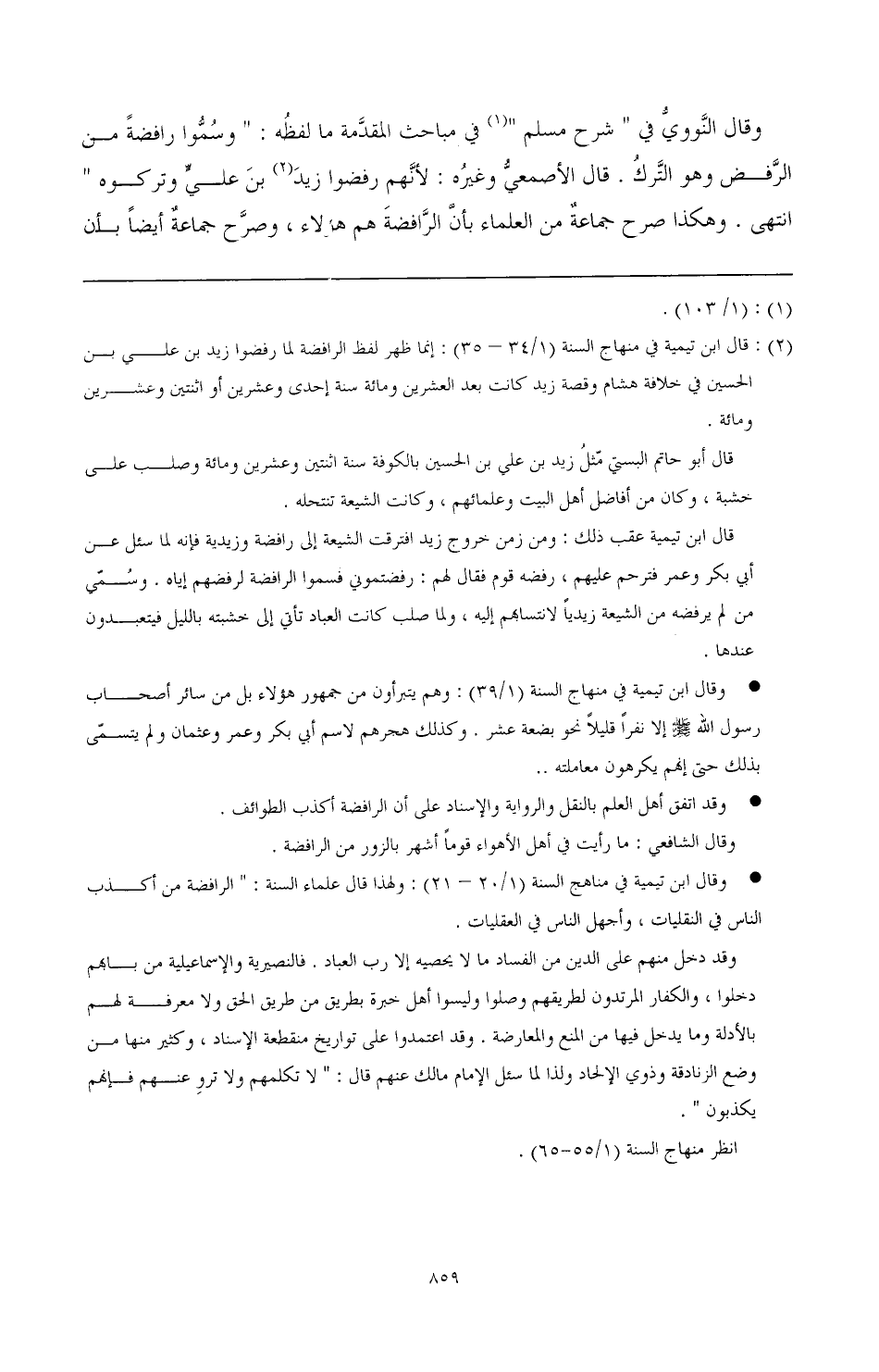 (¬2) قال ابن تيمية في منهاج السنة (1/ 34 - 35): إنما ظهر لفظ الرافضة لما رفضوا زيد بن على بن الحسيني في خلافة هشام وقصة زيد كانت بعد العشرين ومائه سنة إحدى وعشرين أو اثنتين ومائه.
