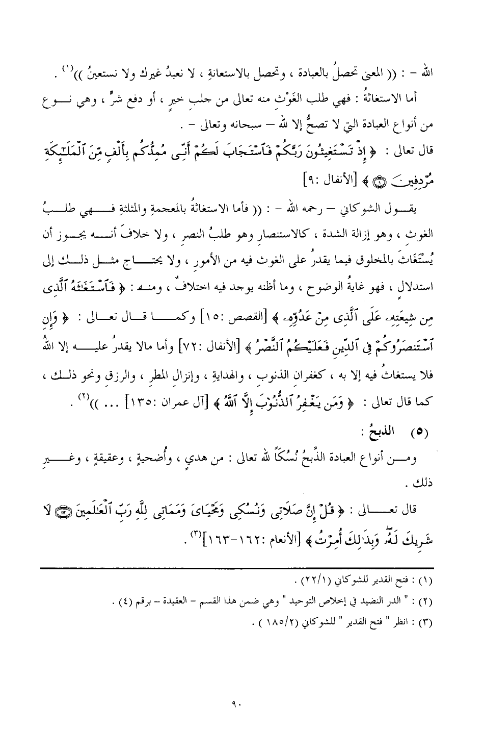 (¬2) " الدر النضيد في إخلاص التوحيد " وهي ضمن هذا القسم- العقيدة- برقم (4).