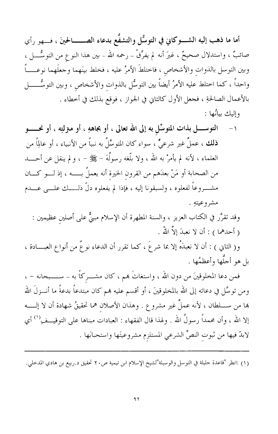 (¬1) انظر "قاعدة جليلة في التوسل والوسيلة" لشيخ الإسلام ابن تيمية ص 20 تحقيق د. ربيع بن هادي المدخلي.