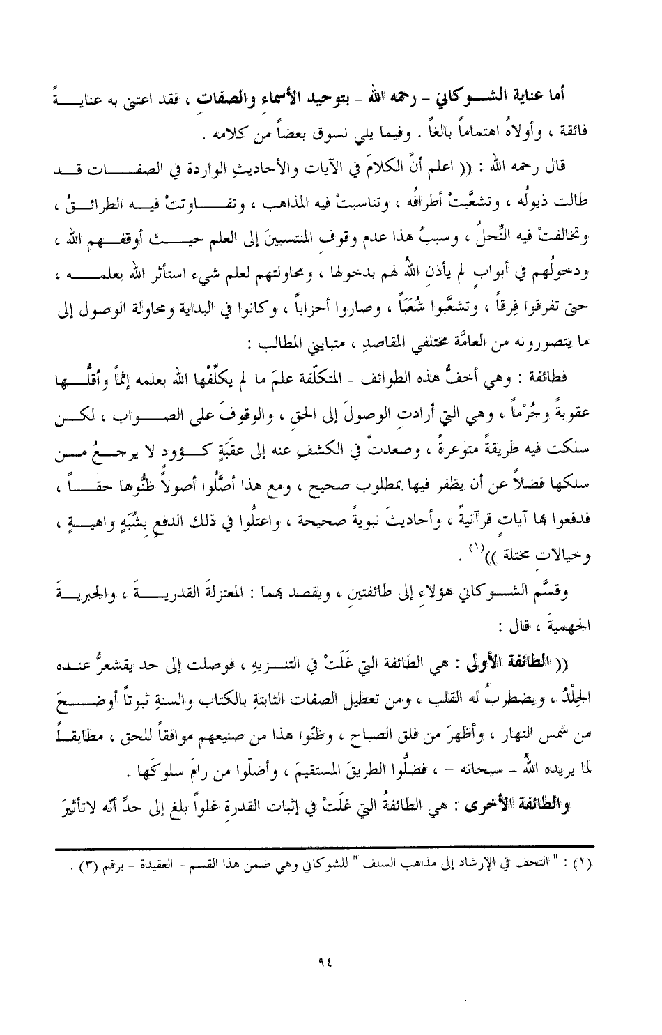 (¬1) " التحف في الإرشاد إلى مذاهب السلف " للشوكاني وهي ضمن هذا القسم- العقيدة- لرقم (3).