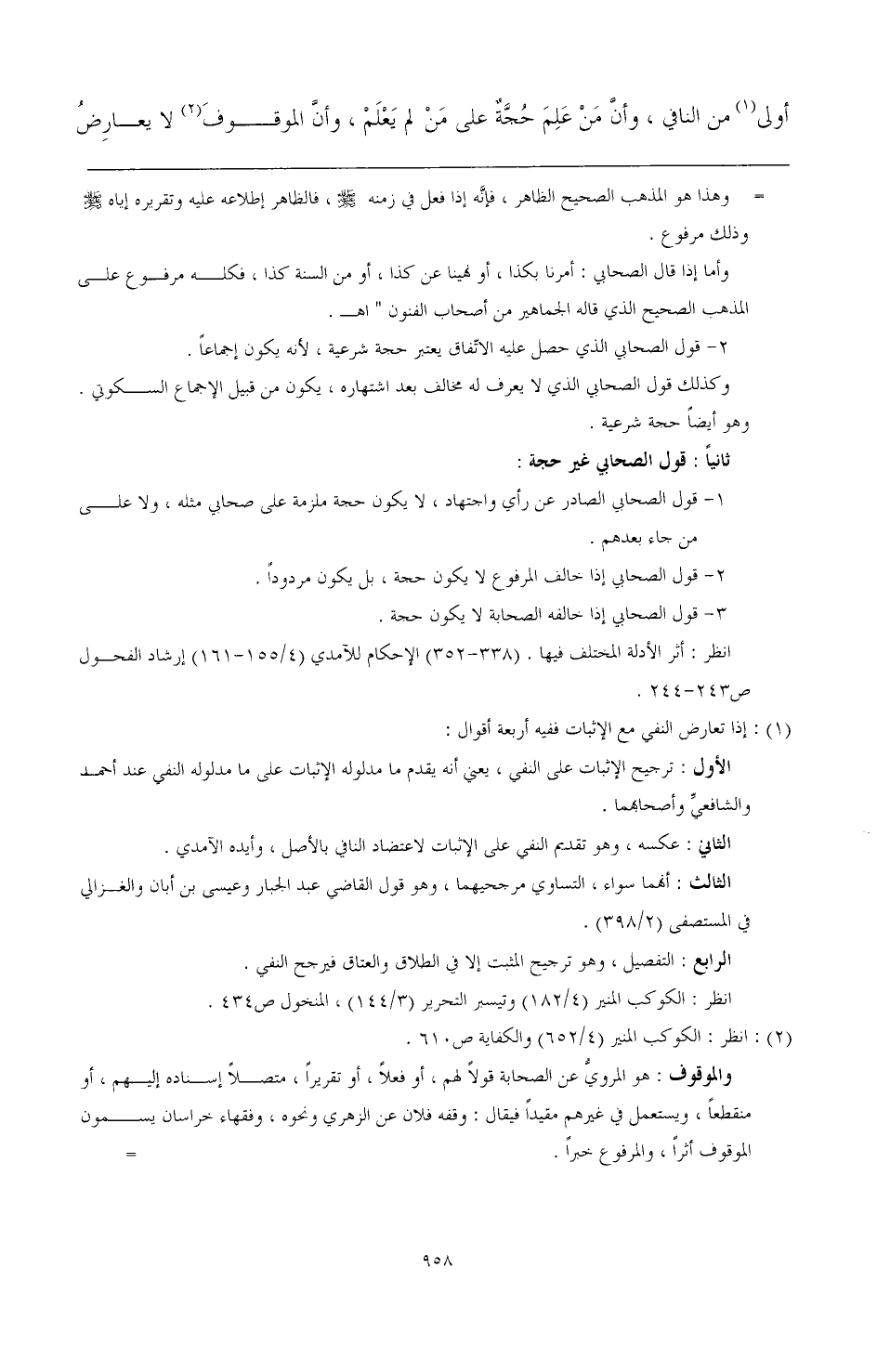 (¬1) إذا تعارض النفي مع الإثبات ففيه أربعة أقوال: