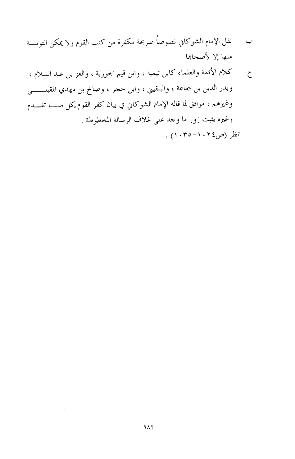 ج- كلام الأئمة والعلماء كابن تيميه، وابن فيم الجوزية، والعز بن عبد السلام، وبدر الدين بن جماعة، والبلقيني، وابن حجر، وصالح بن مهدي المقبلي وغيرهم، موافق لما قاله الإمام الشوكاني في بيان كفر القوم كل ما تقدم وغيره يثبت زور ما وجد على غلاف الرسالة المخطوطة.