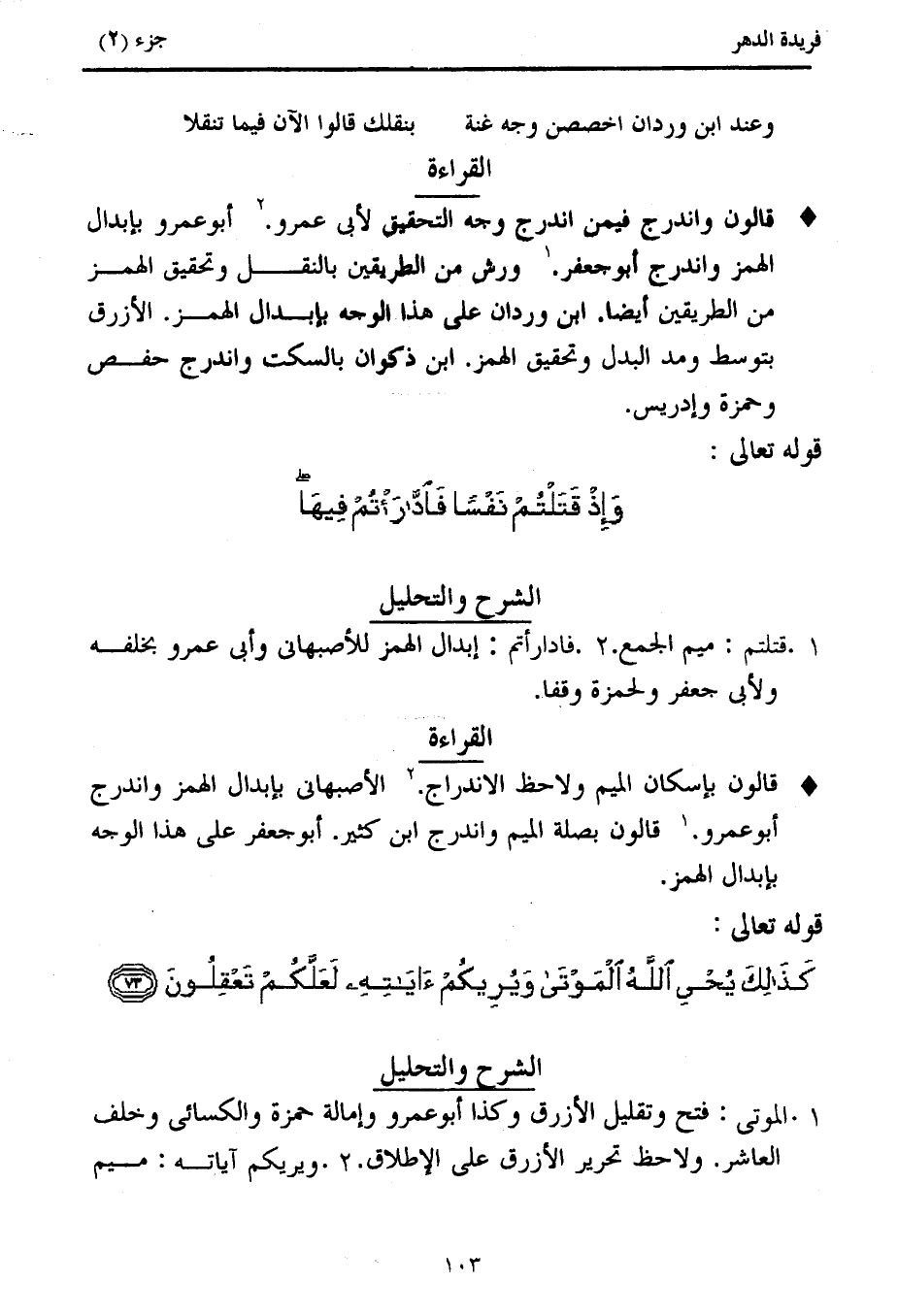 كتاب فريدة الدهر في تأصيل وجمع القراءات (اسم الجزء: 2)