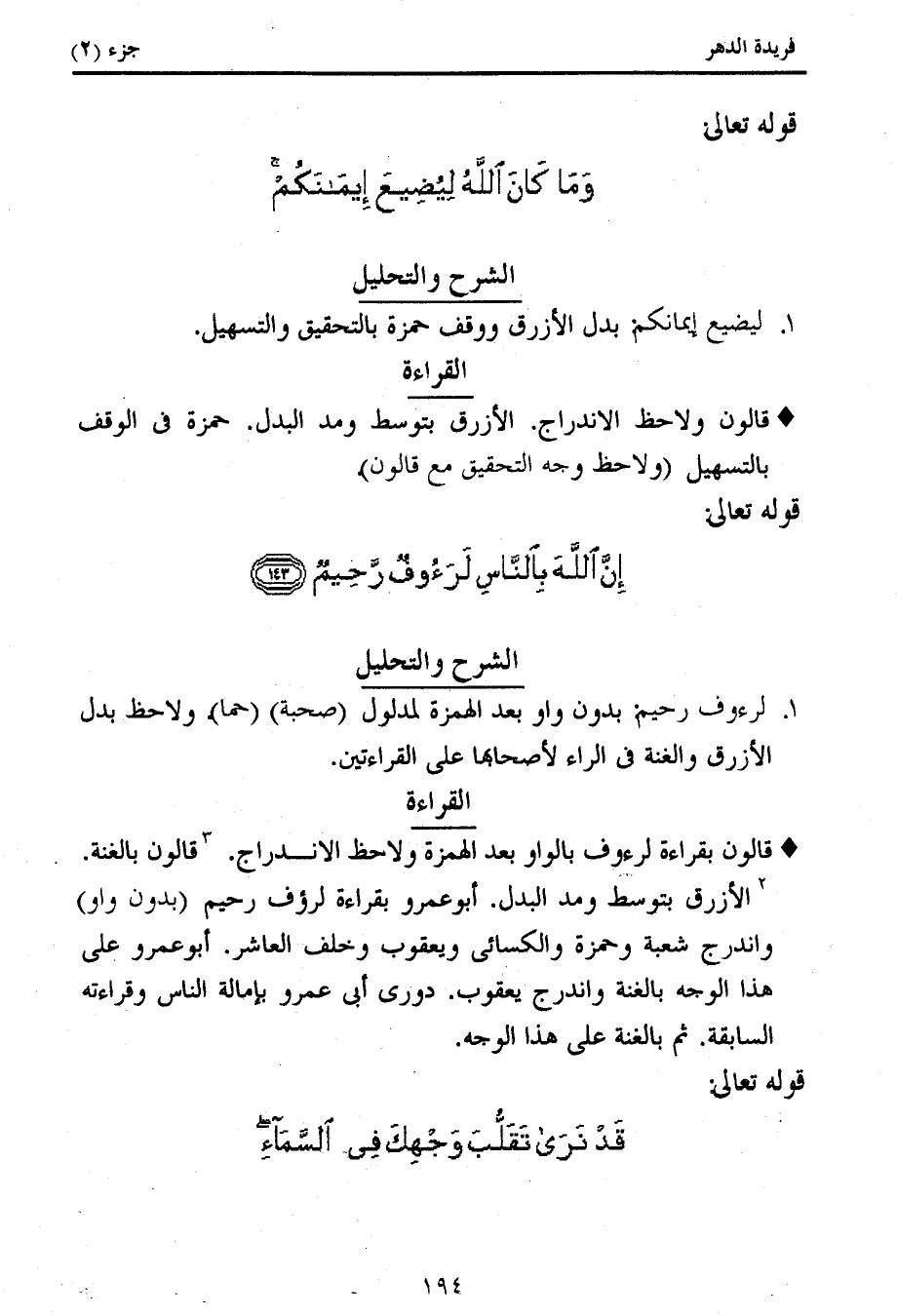 2 الأزرق بتوسط ومد البدل. أبو عمرو بقراءة لرؤف رحيم (بدون واو) واندرج شعبة وحمزة والكسائى ويعقوب وخلف العاشر. أبو عمرو على هذا الوجه بالغنة واندرج يعقوب. دورى أبى عمرو بإمالة الناس وقراءته السابقة. ثم بالغنة على هذا الوجه.