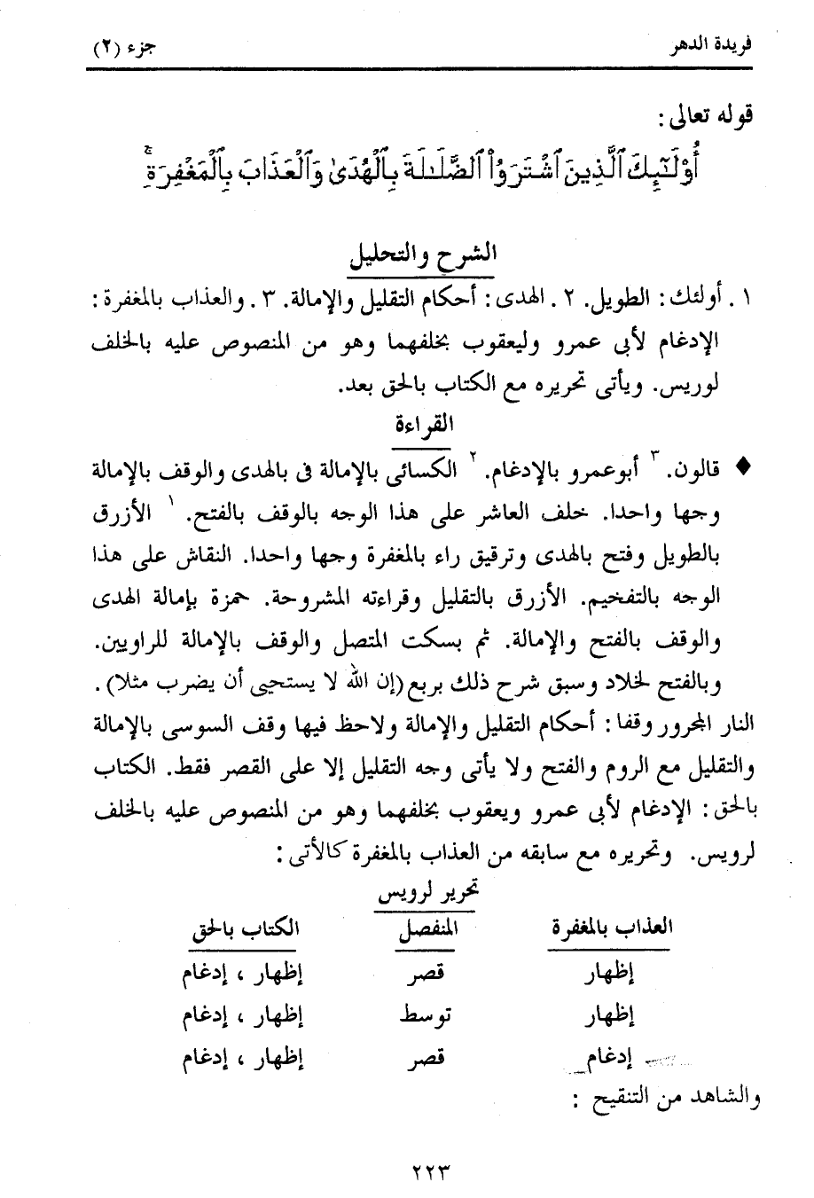 1. أولئك: الطويل. 2. الهدى: أحكام التقليل والإمالة. 3. والعذاب بالمغفرة: