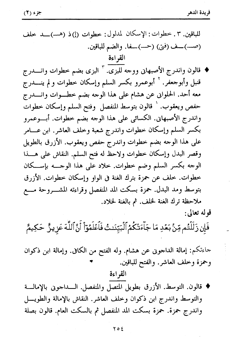 قوله تعالى: فَإِنْ زَلَلْتُمْ مِنْ بَعْدِ ما جاءَتْكُمُ الْبَيِّناتُ فَاعْلَمُوا أَنَّ اللَّهَ عَزِيزٌ حَكِيمٌ جاءتكم: إمالة الداجونى عن هشام. وله الفتح من الكافى. وإمالة ابن ذكوان وحمزة وخلف العاشر. والفتح للباقين.