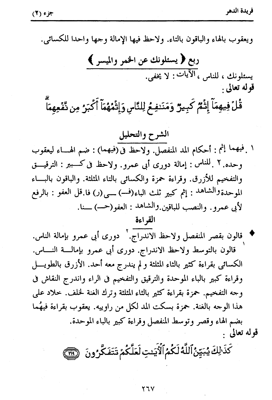 الكسائى بقراءة كثير بالثاء المثلثة ولم يندرج معه أحد. الأزرق بالطويل وقراءة كبير بالباء الموحدة والترقيق والتفخيم فى الراء واندرج النقاش فى وجه التفخيم. حمزة بقراءة كثير بالثاء المثلثة وترك الغنة لخلف. خلاد على هذا الوجه بالغنة. حمزة بسكت المد لكل من راوييه. يعقوب بقراءة فيهما بضم الهاء وقصر وتوسط المنفصل وقراءة كبير بالباء الموحدة.