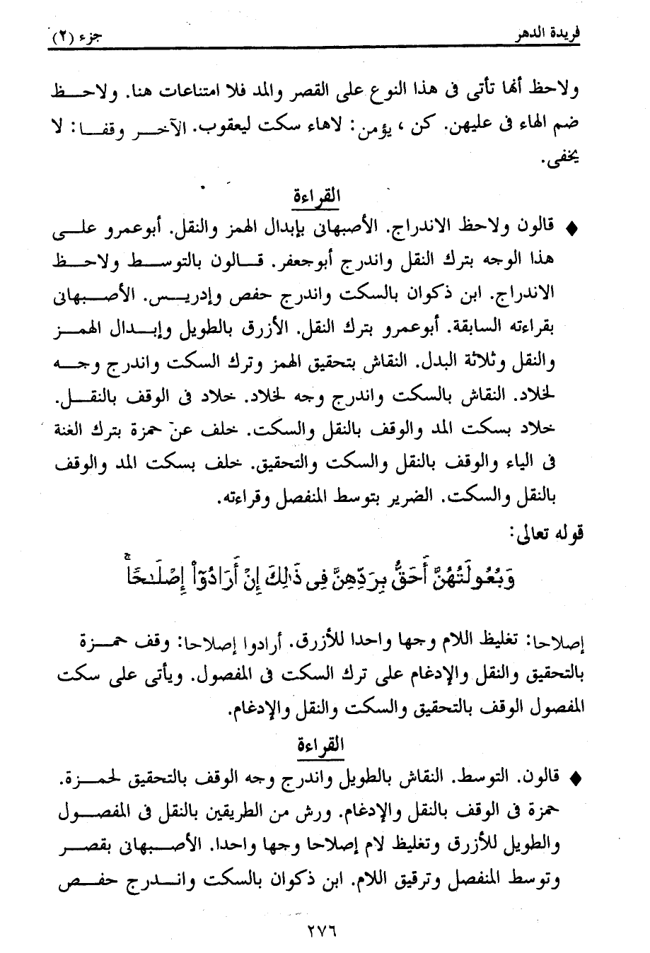كتاب فريدة الدهر في تأصيل وجمع القراءات (اسم الجزء: 2)