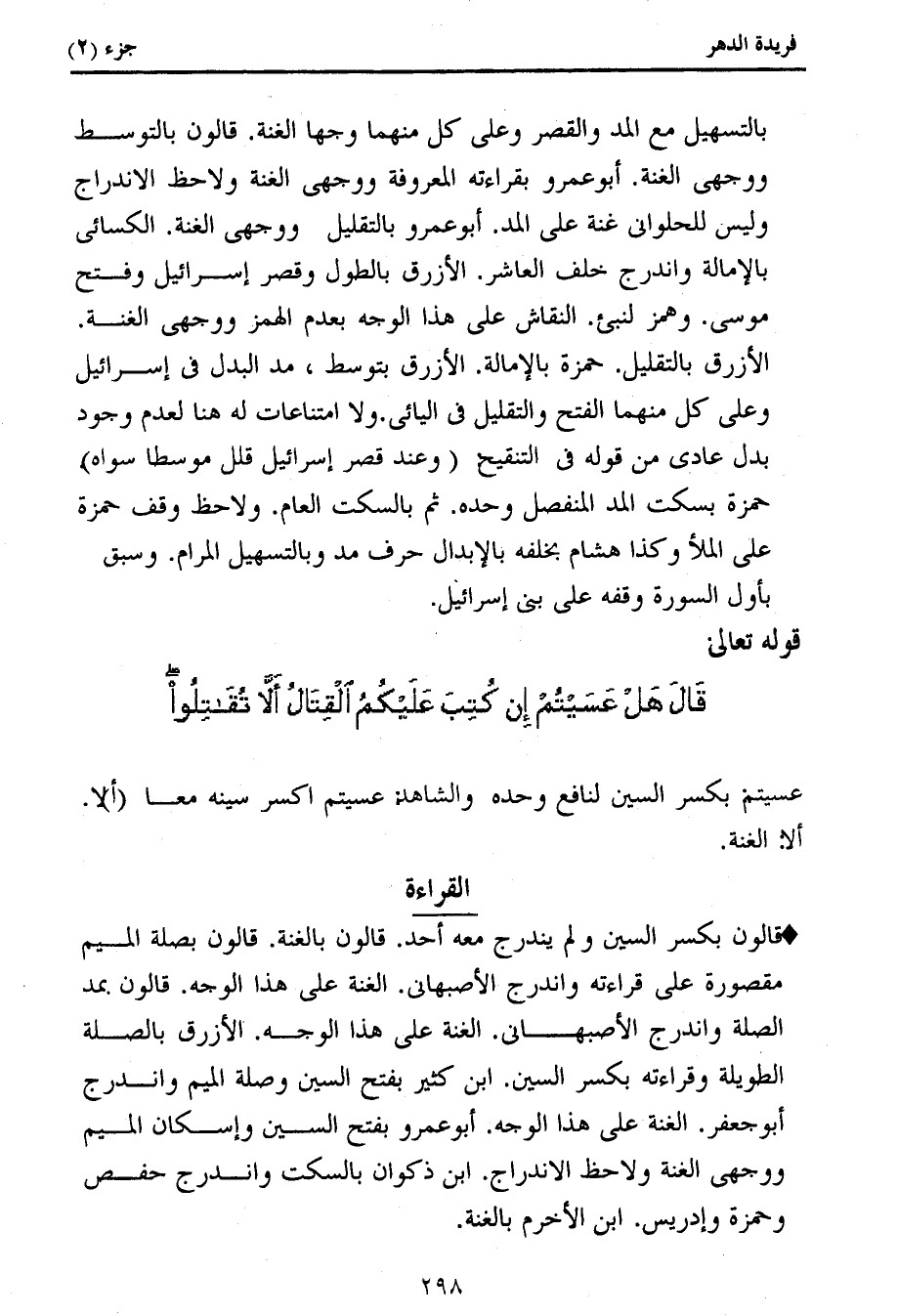 كتاب فريدة الدهر في تأصيل وجمع القراءات (اسم الجزء: 2)