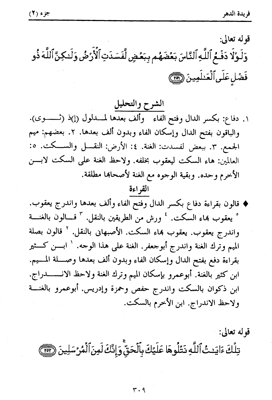 قالون بقراءة دفاع بكسر الدال وفتح الفاء وألف بعدها واندرج يعقوب.