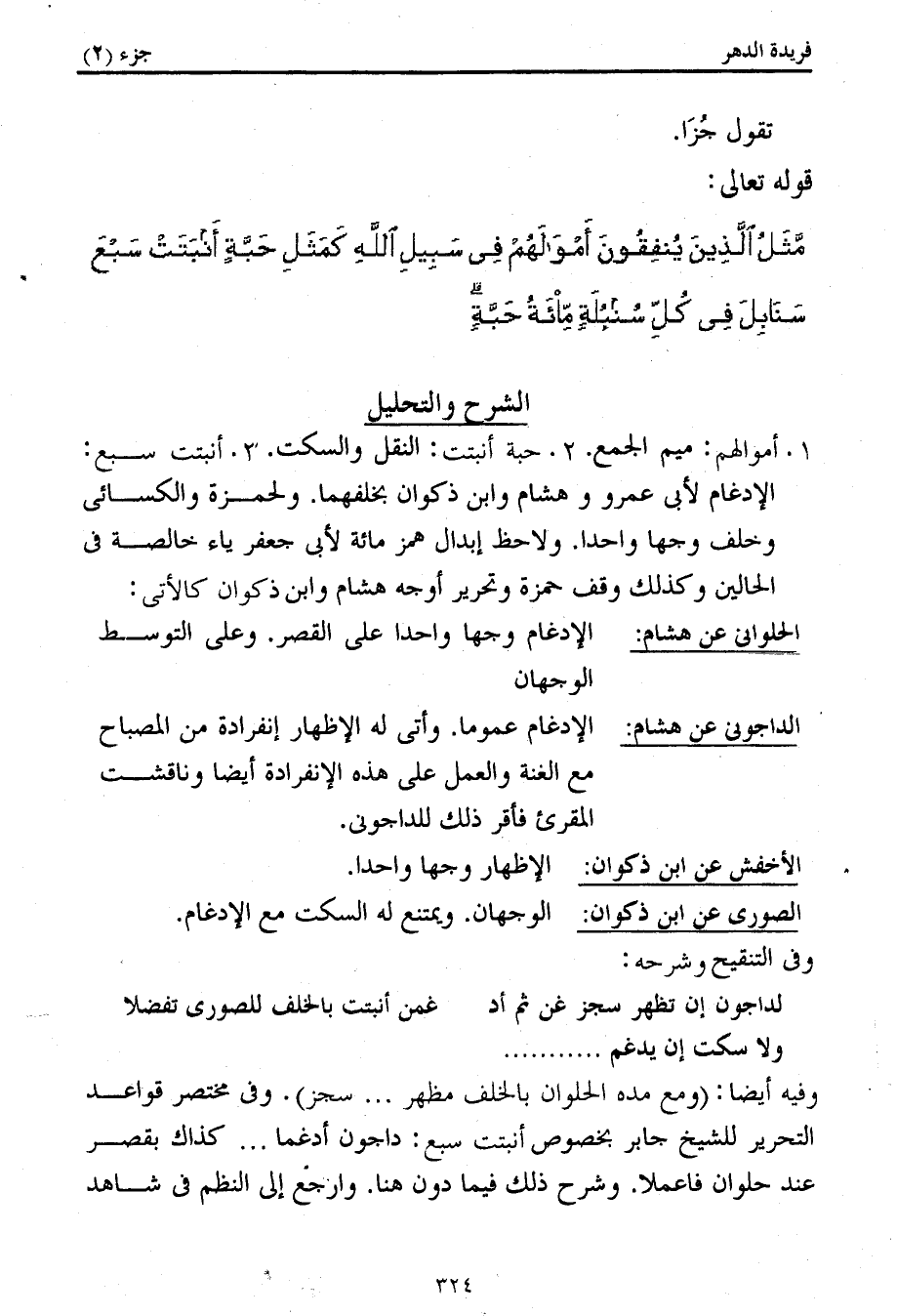 كتاب فريدة الدهر في تأصيل وجمع القراءات (اسم الجزء: 2)