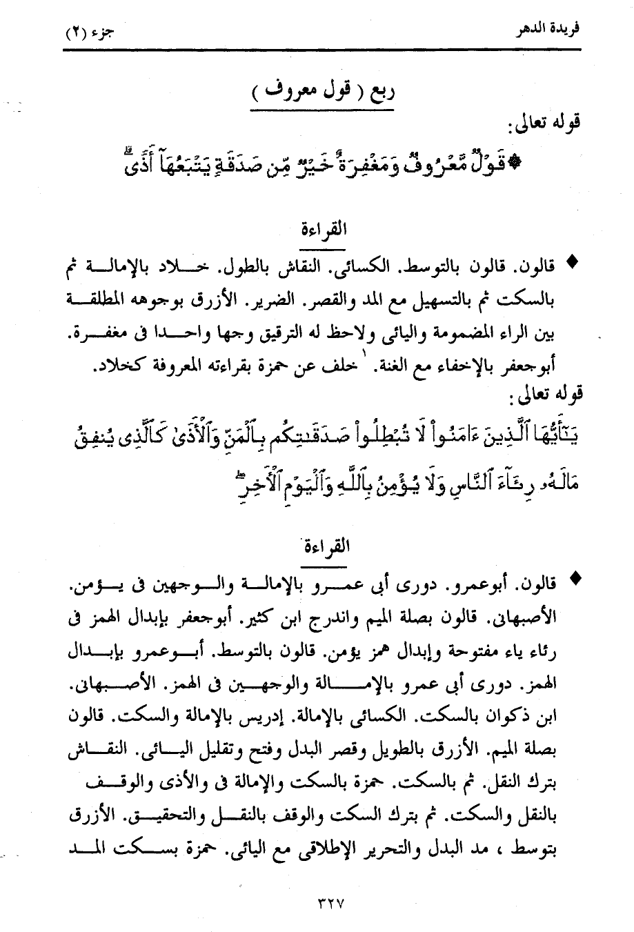 كتاب فريدة الدهر في تأصيل وجمع القراءات (اسم الجزء: 2)