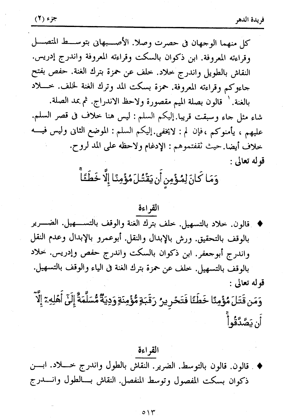 كتاب فريدة الدهر في تأصيل وجمع القراءات (اسم الجزء: 2)