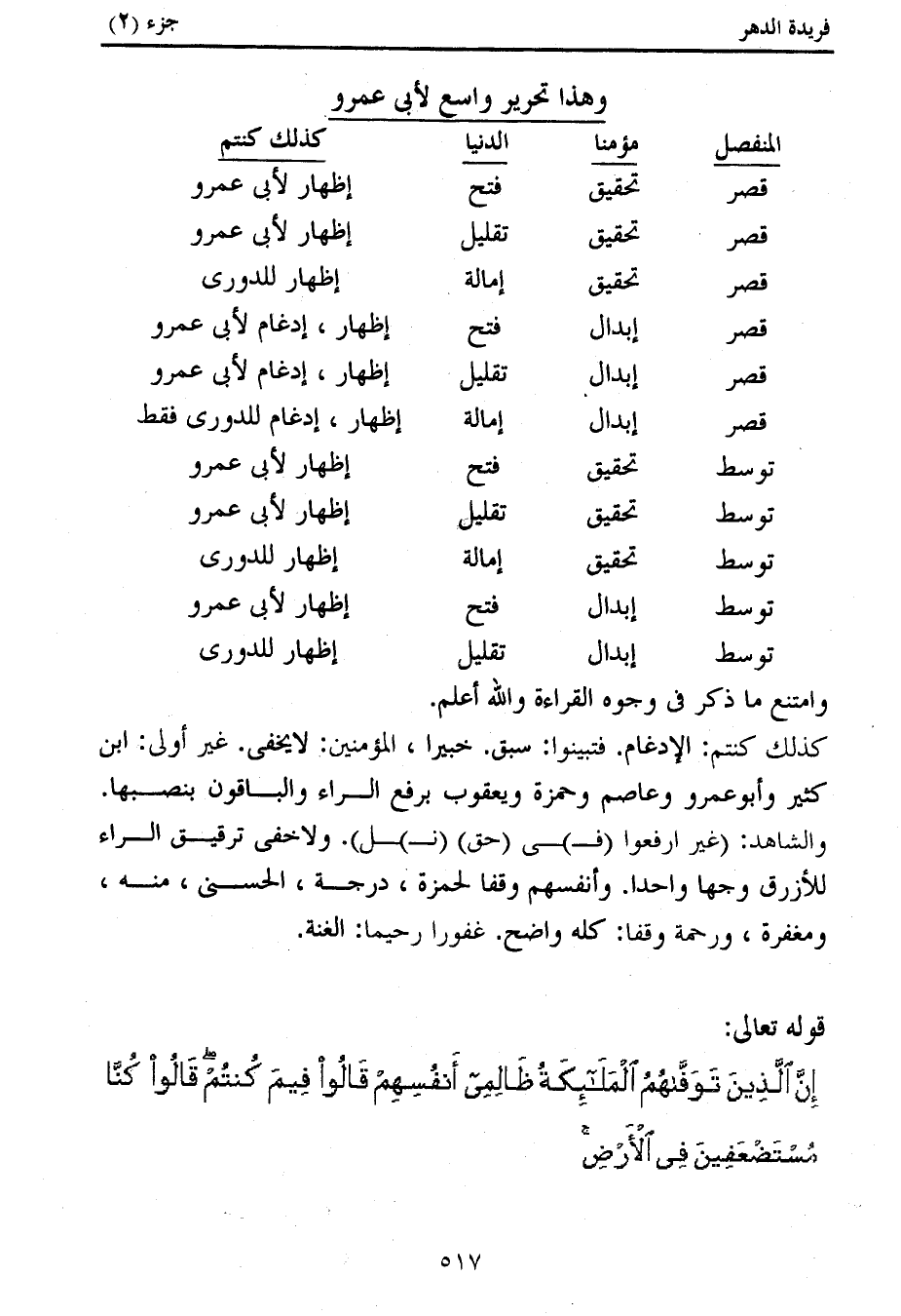 قصر/ تحقيق/ فتح/ إظهار لأبى عمرو