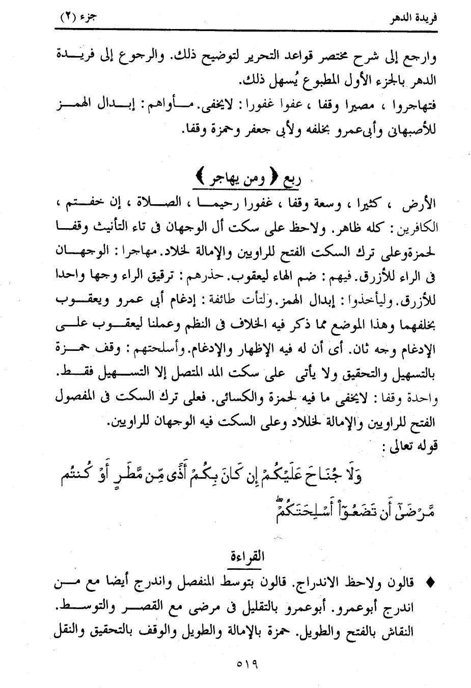كتاب فريدة الدهر في تأصيل وجمع القراءات (اسم الجزء: 2)