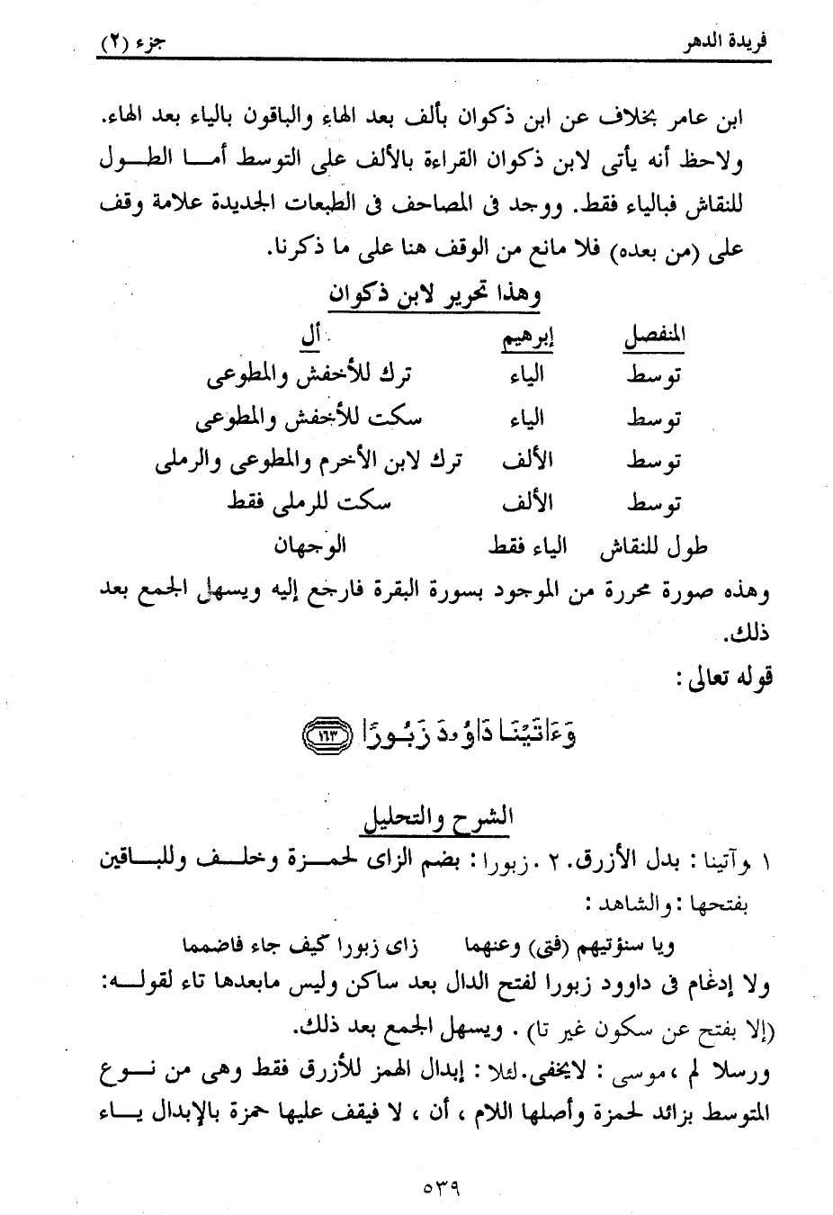 1. وآتينا: بدل الأزرق. 2. زبورا: بضم الزاى لحمزة وخلف وللباقين بفتحها: والشاهد: