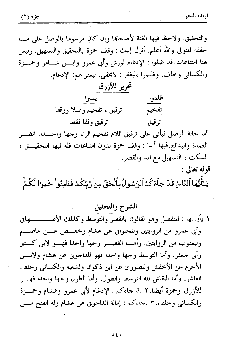 كتاب فريدة الدهر في تأصيل وجمع القراءات (اسم الجزء: 2)
