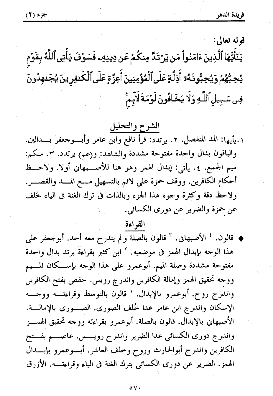 1. يأيها: المد المنفصل. 2. يرتدد: قرأ نافع وابن عامر وأبو جعفر بدالين.