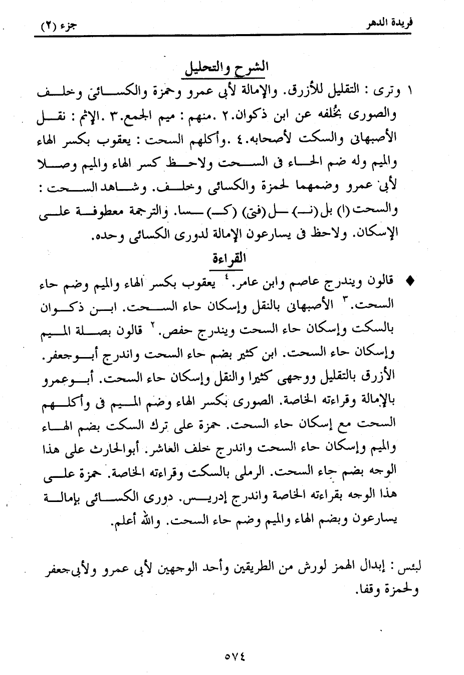كتاب فريدة الدهر في تأصيل وجمع القراءات (اسم الجزء: 2)