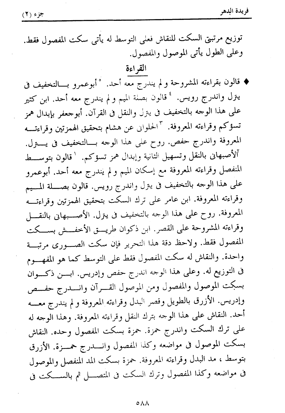 كتاب فريدة الدهر في تأصيل وجمع القراءات (اسم الجزء: 2)