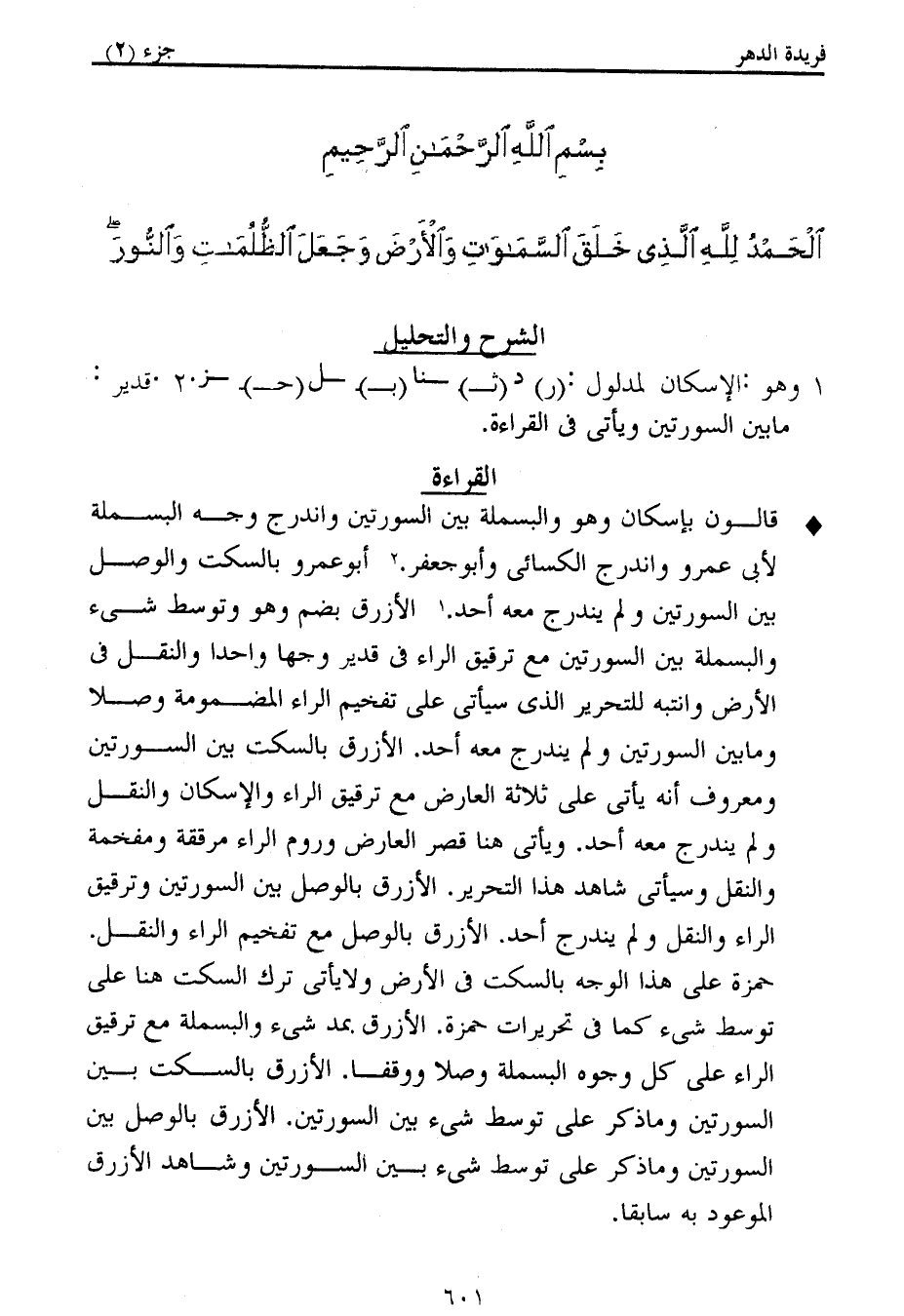 قالون بإسكان وهو والبسملة بين السورتين واندرج وجه البسملة لأبى عمرو واندرج الكسائى وأبو جعفر. 2 أبو عمرو بالسكت والوصل بين السورتين ولم يندرج معه أحد. 1 الأزرق بضم وهو وتوسط شىء والبسملة بين السورتين مع ترقيق الراء فى قدير وجها واحدا والنقل فى الأرض وانتبه للتحرير الذى سيأتى على تفخيم الراء المضمومة وصلا وما بين السورتين ولم يندرج معه أحد. الأزرق بالسكت بين السورتين ومعروف أنه يأتى على ثلاثة العارض مع ترقيق الراء والإسكان والنقل ولم يندرج معه أحد. ويأتى هنا قصر العارض وروم الراء مرققة ومفخمة والنقل وسيأتى شاهد هذا التحرير. الأزرق بالوصل بين السورتين وترقيق الراء والنقل ولم يندرج أحد. الأزرق بالوصل مع تفخيم الراء والنقل.
