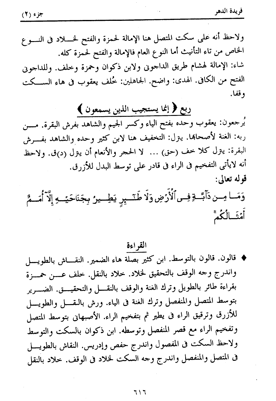 كتاب فريدة الدهر في تأصيل وجمع القراءات (اسم الجزء: 2)